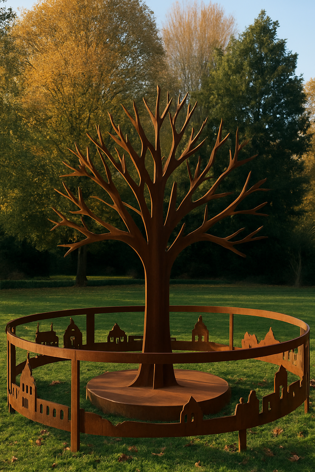 Onze GedenkBomen worden gemaakt van cortenstaal 10 mm dik. De blaadjes worden vervaardigd van 1,5 mm rvs