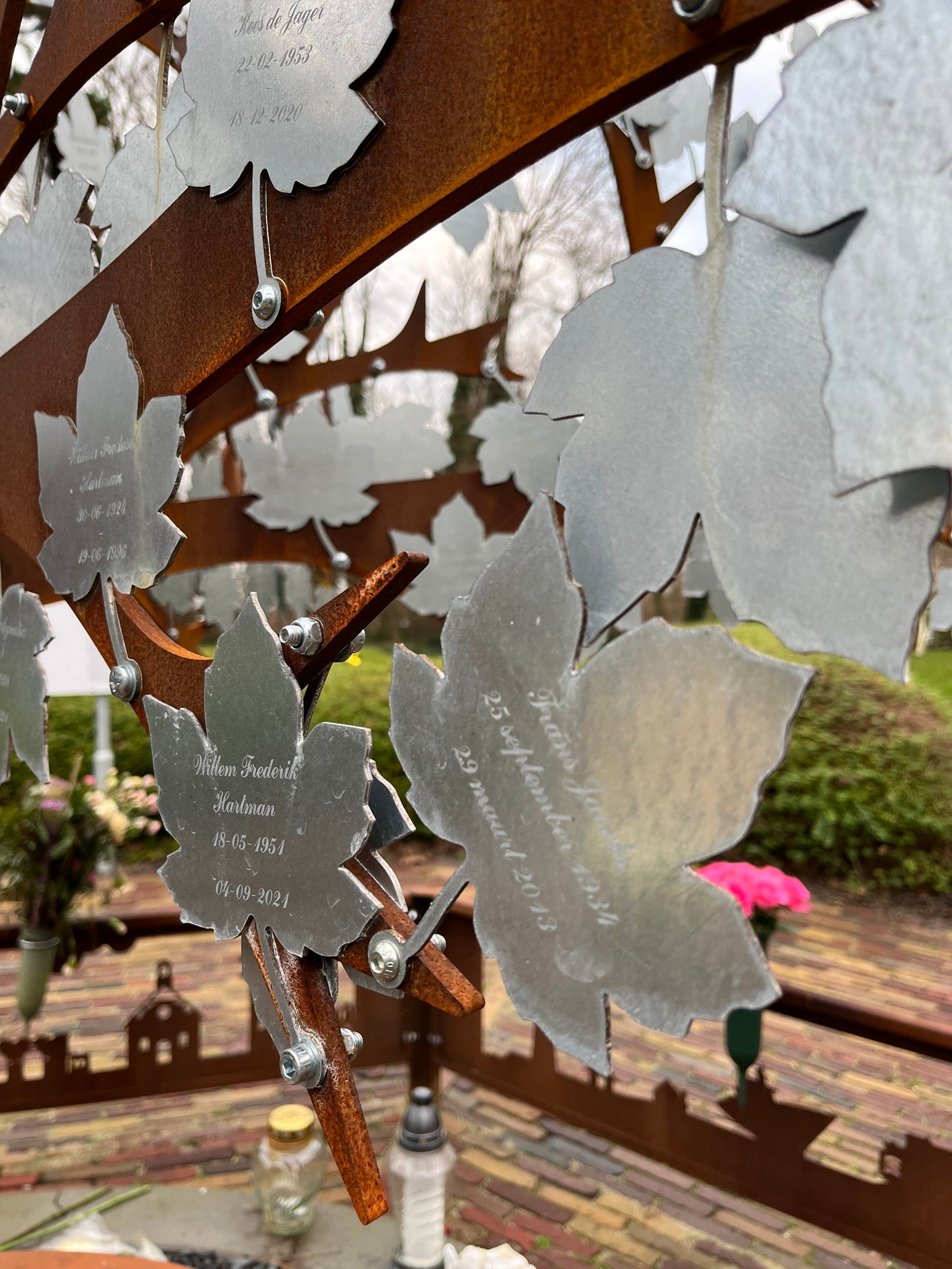 Onze GedenkBomen worden gemaakt van cortenstaal 10 mm dik. De blaadjes worden vervaardigd van 1,5 mm rvs